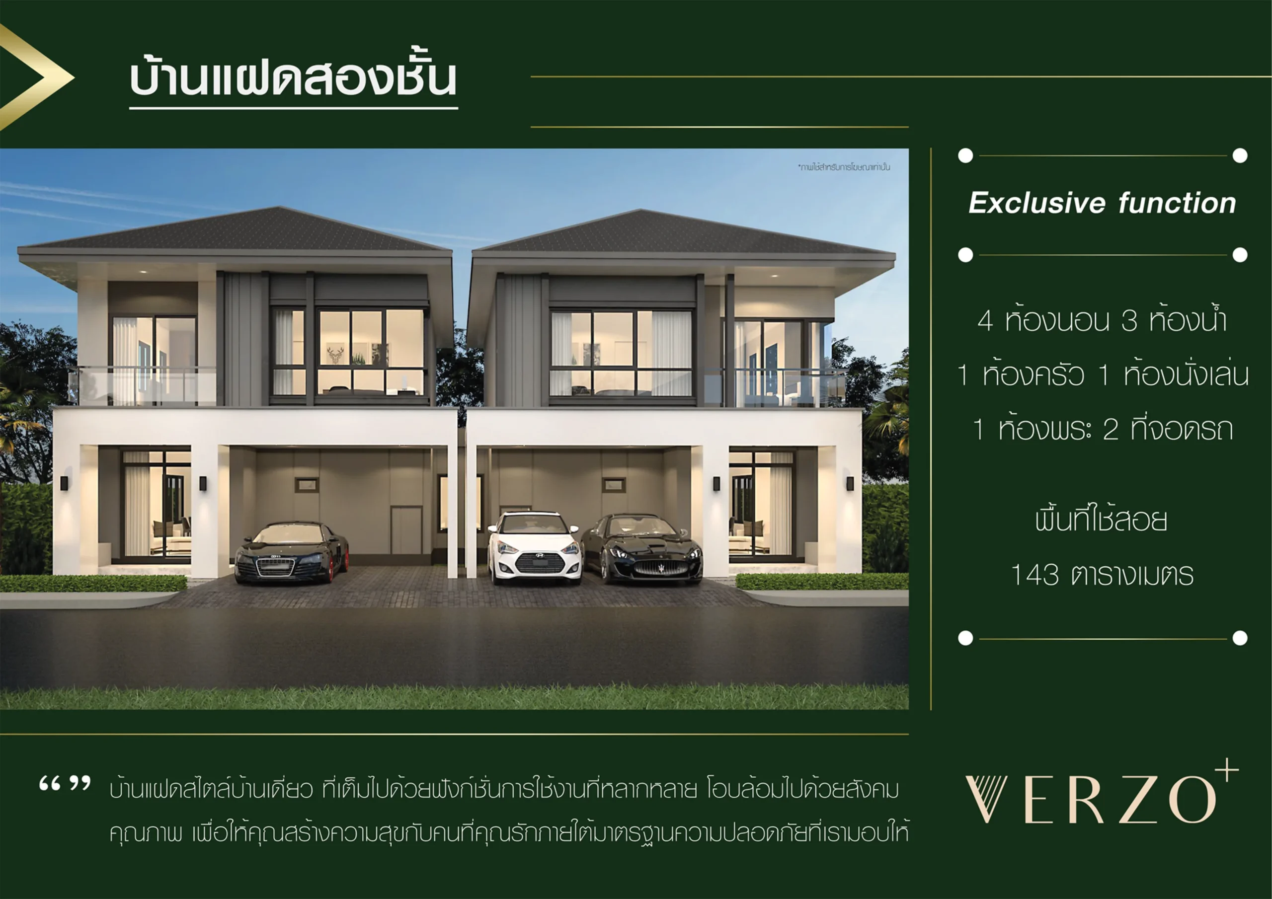 บ้านแฝดสไตล์บ้านเดี่ยว ที่เต็มไปด้วยฟังก์ชั่นการใช้งานที่หลากหลาย โอบล้อมด้วยสังคมคุณภาพ เพื่อให้คุณได้สร้างความสุขกับคนที่คุณรัก ภายใต้มาตรฐานความปลอดภัยที่เรามอบให้
